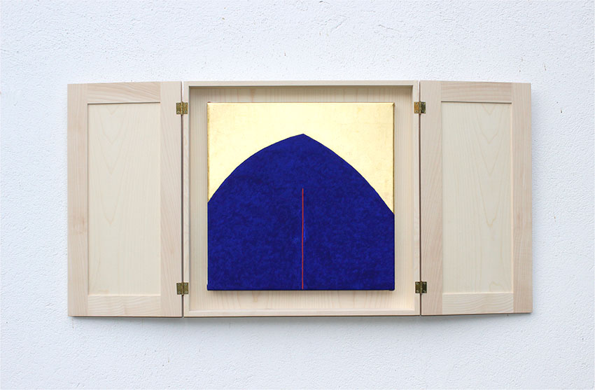 Öl/Leinwand Blattgold echtes Zinnoberpigment 45 x 45 cmSchreine aus Ahornholz
